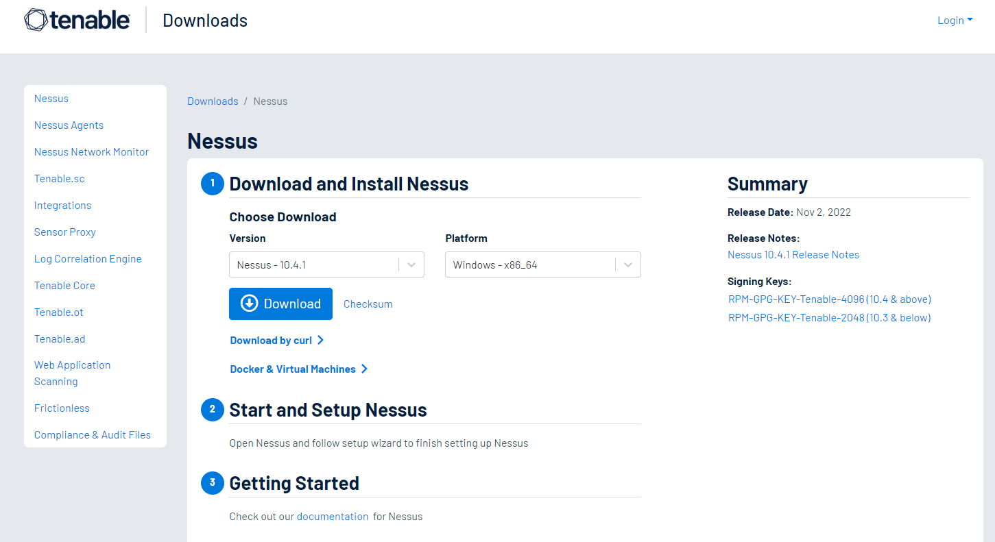 1、 nessus官网下载安装包https://www.tenable.com/downloads/nessus,大家可以根据所需下载对应的安装包,目前nessus支持的安装包还是很全的,我这里下载的是nessus-10.4.1 win 64位