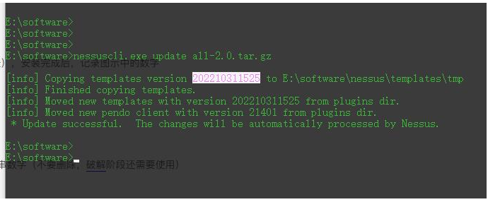 13、进入到 Nessus 安装目录下,更新插件,运行命令:nessuscli.exe update all-2.0.tar.gz