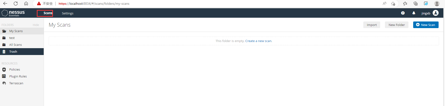 1、上面操作我们安装和配置好后,登录本地访问地址,在scans中进行设置扫描